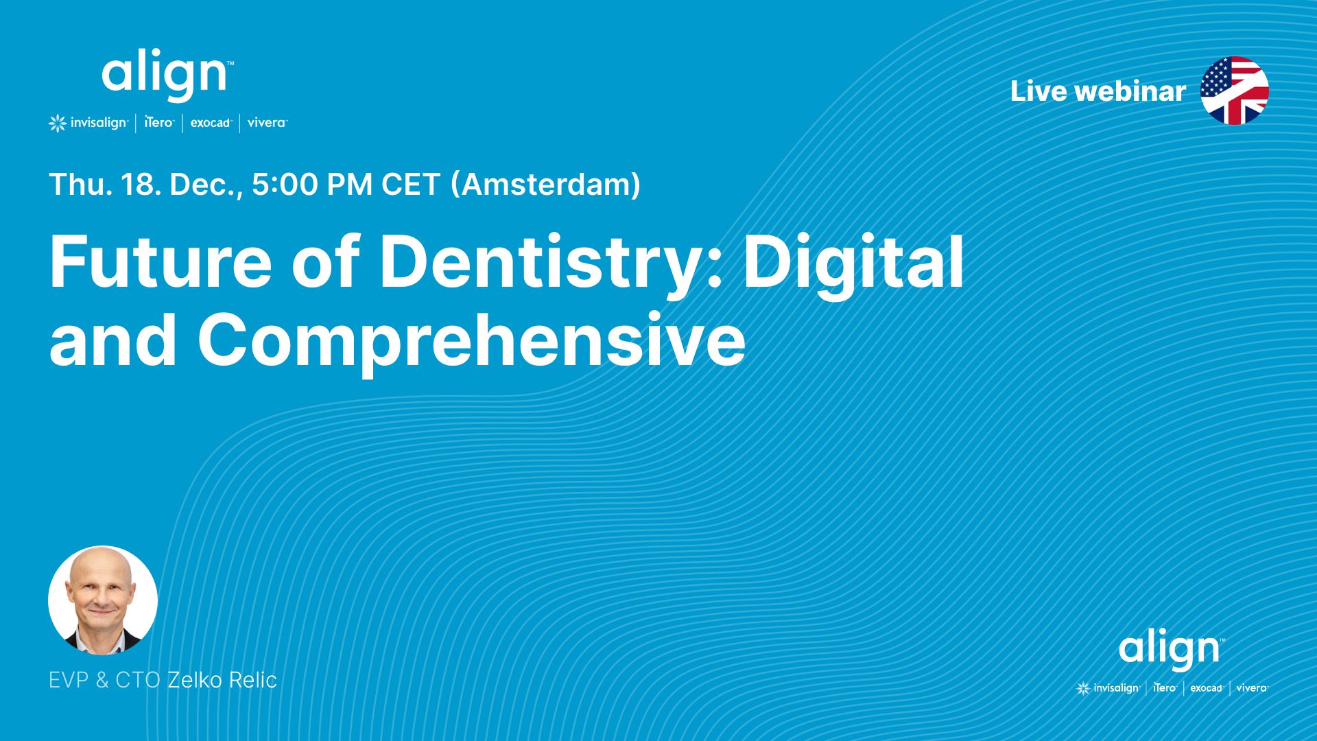The webinar Future of Dentistry: Digital and Comprehensive explores the transformative impact of digital technology on modern dentistry, emphasizing a comprehensive, patient-centered approach. Led by Zelko Relic, EVP and CTO of Align Technology, the session highlights how digital platforms such as Invisalign, iTero, and exocad are revolutionizing dental practices, patient experiences, and treatment outcomes.